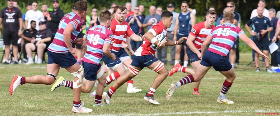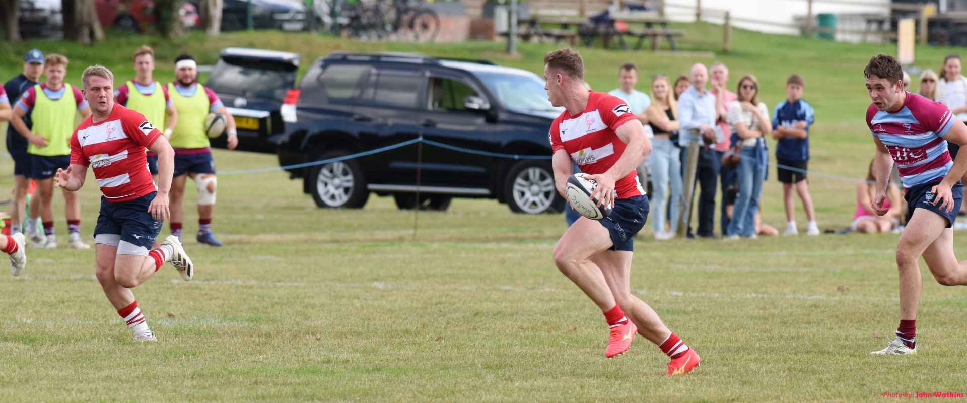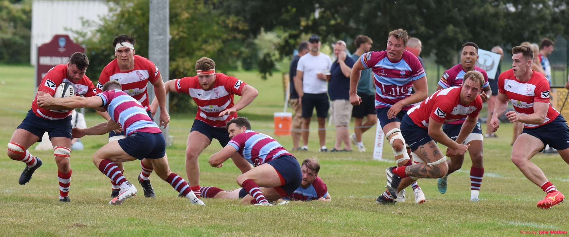 In a fast flowing and high scoring game between the two old rivals, the Red & Whites ran out comfortable winners scoring 8 tries to 4 at Barham Road in Saturday’s season opener. Two tries each by Finn Osborne, Joel Grant and newcomer Tom Howe, along with one apiece from Captain Fred Dalton and Cam Cowell, topped by 7 conversions and 1 penalty from Henry ‘The Hoof’ Anscombe sealed an impressive performance against a dogged Wimbledon side who never took a step backwards.