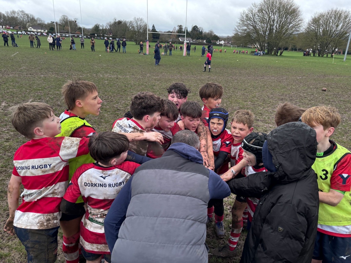 The Boys U12s entered two mixed-ability teams, The Reds and The Whites, into the middle tier Waterfall Cup this year. The competition is a steep learning curve for boys and coaches alike, a first taste of proper competitive rugby for the boys coupled with all the post-match bells and whistles, Number 1 dress code providing an opportunity to show off brand new club ties at the post-match meals ! The Reds found themselves in a brutally tough group but got off to a great start at Trinity with a hard fought victory, coming back from 2-0 down to win 6-4. From that point forward they were up against it, a very strong Haslemere created a lead that was too tough to overcome despite another heroic fight back, and a streamed A-team from Cobham, who admitted that they had entered the tier above but somehow found themselves in this group, were held for most of the game by some outstanding defence and commitment but ultimately just wore us out, that the boys went toe-to-toe with an A team for much of the game was a point of immense price for their supporters. The penultimate match away against Chobham saw the squad missing a few regulars for half term and tough outing in the freezing rain and mud. The final fixture for the Reds against Farnham documented above, whose strength in depth we have seen first-hand, was a richly satisfying victory after a very tough group stage campaign.